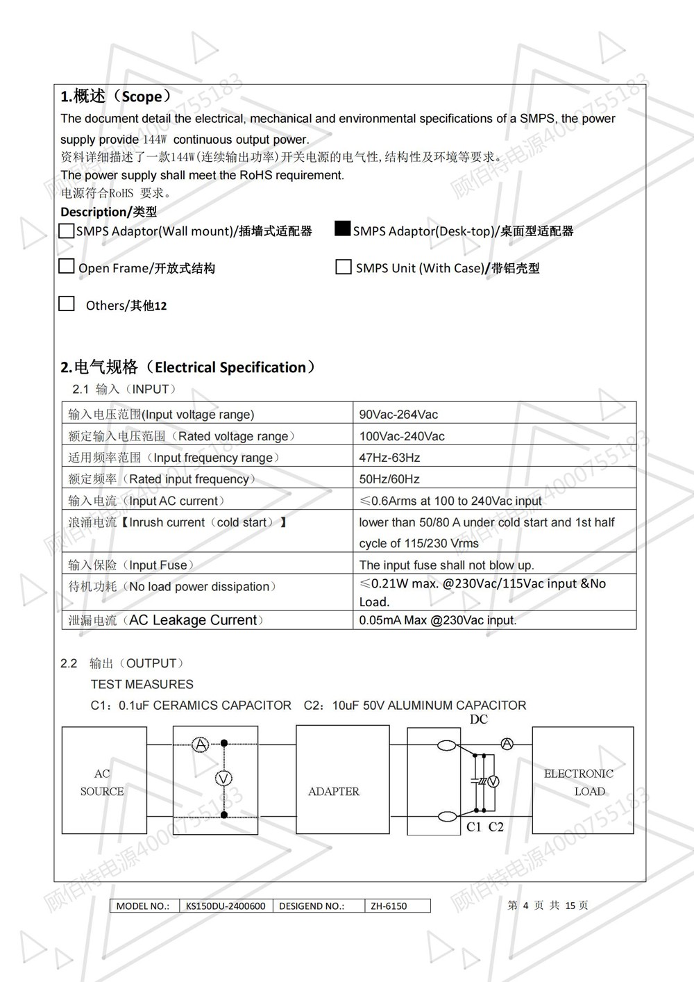 24V6A電源適配器帶PFC電路144W(連續(xù)輸出功率)開關(guān)電源的電氣性,結(jié)構(gòu)性及環(huán)境等要求。
